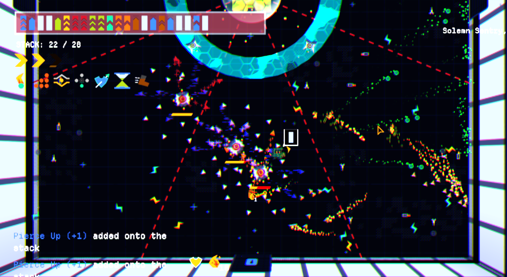 STACKOVERFLOW is a rougelike bullet purgatory where the enemies projectiles are both obstacles and the players source of power. Getting hit transfers data from the bullet to your stack, where it can make you stronger or weaker, or even unlock entirely new abilities. But be careful, as you only have so much memory before your system overflows.